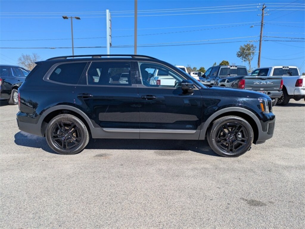 Local Home Delivery: If you buy a vehicle, over the phone, email, text. We will deliver the vehicle to your home or a place of your choosing. Woody Folsom Chrysler Dodge Jeep Ram Vidlia is excited to offer this handsome 2023 Kia Telluride in Ebony Black This vehicle has passed our comprehensive inspection and comes with the following 3.648 Axle Ratio, 3rd row seats: split-bench, 4-Wheel Disc Brakes, 6 Speakers, ABS brakes, Air Conditioning, Alloy wheels, AM/FM radio: SiriusXM, Apple CarPlay & Android Auto, Auto High-beam Headlights, Auto-dimming Rear-View mirror, Auto-leveling suspension, Automatic temperature control, Brake assist, Bumpers: body-color, Carpet Floor Mats, Compass, Delay-off headlights, Driver door bin, Driver vanity mirror, Dual front impact airbags, Dual front side impact airbags, Electronic Stability Control, Emergency communication system: 911 Connect, Exterior Parking Camera Rear, Four wheel independent suspension, Front anti-roll bar, Front Bucket Seats, Front Center Armrest, Front dual zone A/C, Front reading lights, Fully automatic headlights, Heated & Ventilated Front Bucket Seats, Heated door mirrors, Heated front seats, Heated steering wheel, Illuminated entry, Knee airbag, Leather Seat Trim, Leather Shift Knob, Leather steering wheel, Low tire pressure warning, Navigation System, Occupant sensing airbag, Outside temperature display, Overhead airbag, Overhead console, Panic alarm, Passenger door bin, Passenger vanity mirror, Power door mirrors, Power driver seat, Power Liftgate, Power moonroof, Power passenger seat, Power steering, Power windows, Radio data system, Radio: AM/FM Display Audio System, Rear air conditioning, Rear anti-roll bar, Rear audio controls, Rear reading lights, Rear Seat Entertainment System, Rear side impact airbag, Rear window defroster, Rear window wiper, Reclining 3rd row seat, Remote keyless entry, Roof rack: rails only, Security system, Smart Key w/ Push Button and Remote Start, Speed control, Speed-sensing steering, Split folding rear seat, Spoiler, Steering wheel mounted audio controls, Tachometer, Telescoping steering wheel, Tilt steering wheel, Traction control, Trip computer, Turn signal indicator mirrors, Variably intermittent wipers, Ventilated front seats, and Wheels: 20" x 7.5" Black Finish X-LINE Exclusive;